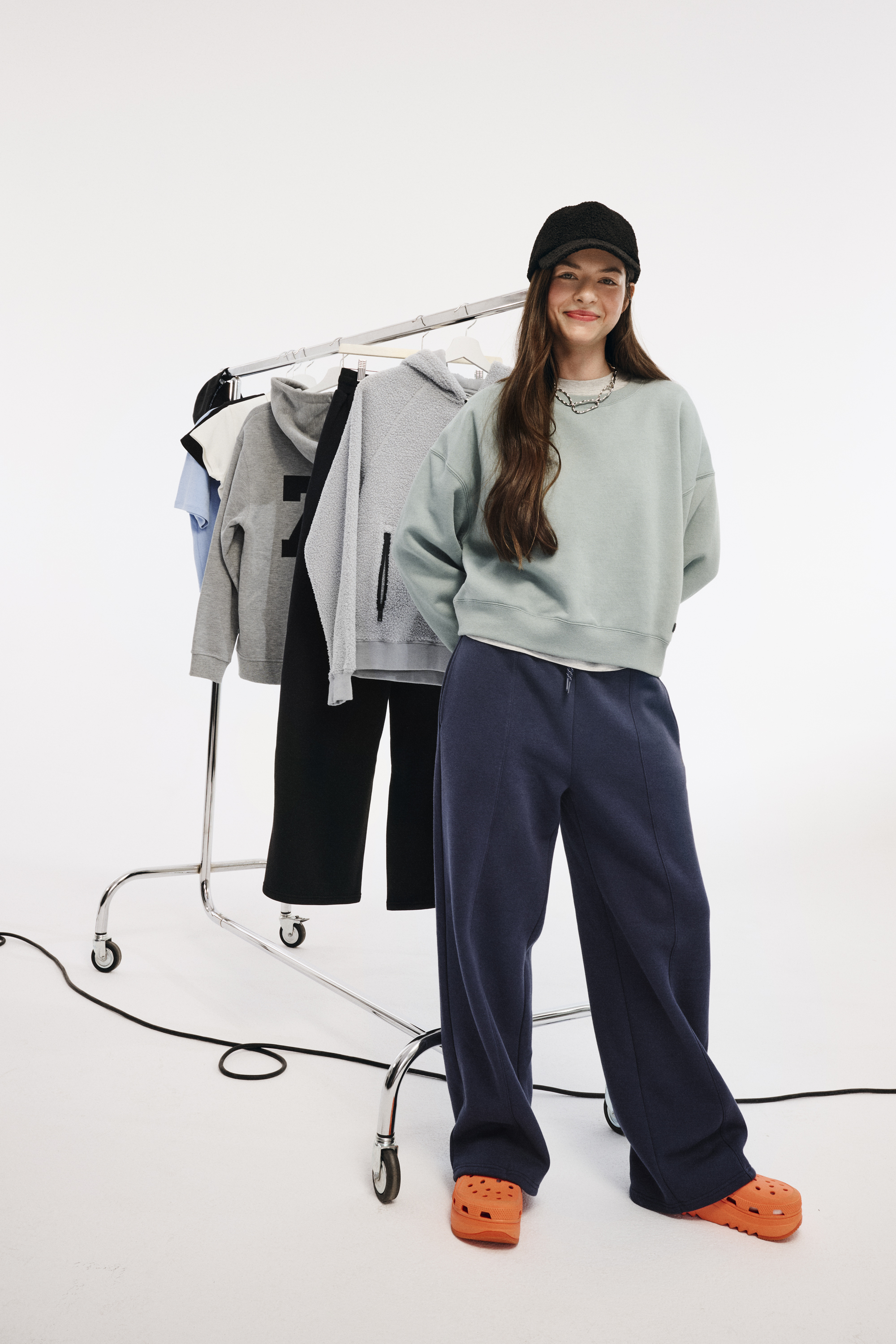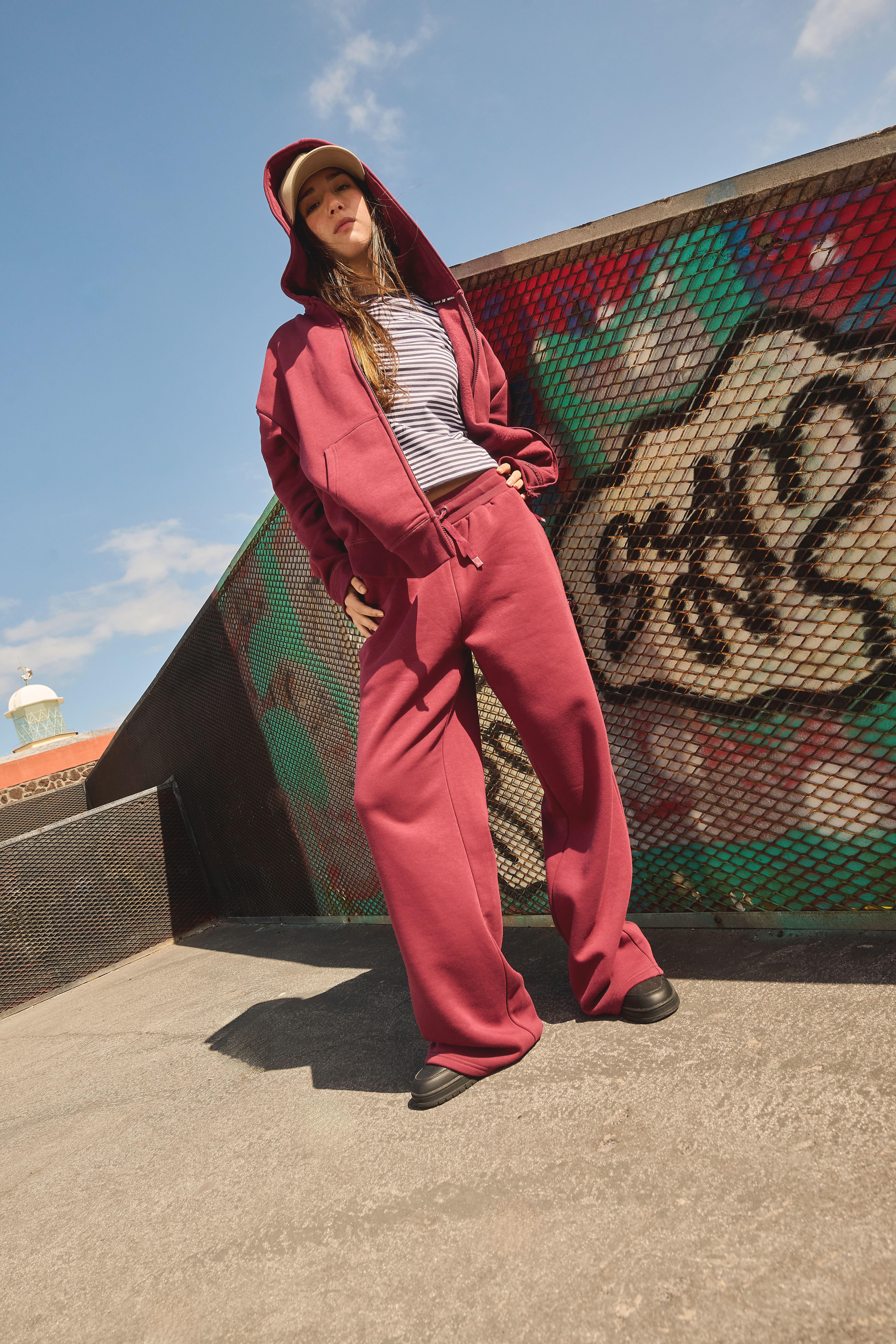 Oversized sweatshirts (with or without hoods, zip-up, plain), t-shirts, and pants that create the perfect base. The look is completed with bombers, winter jackets, and vests. Everything coordinates in color and style—because we make fashion for you, not for fleeting trends.